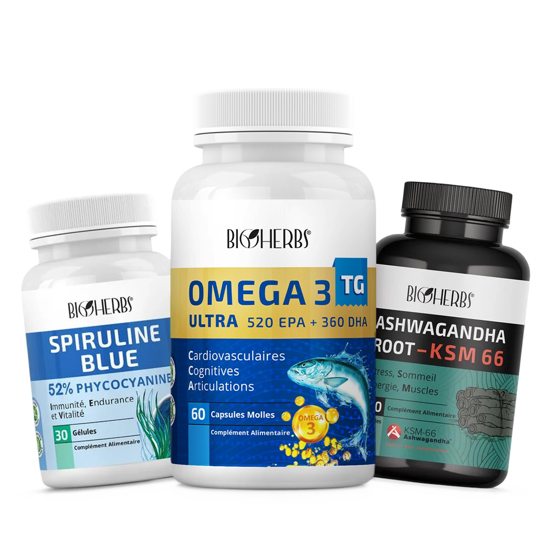 Notre gamme omega 3 tunisie comprend des formulations EPA et DHA hautement biodisponibles, testées en laboratoire et certifiées sans métaux lourds. Chaque capsule est conçue pour maximiser l'absorption et l'efficacité.